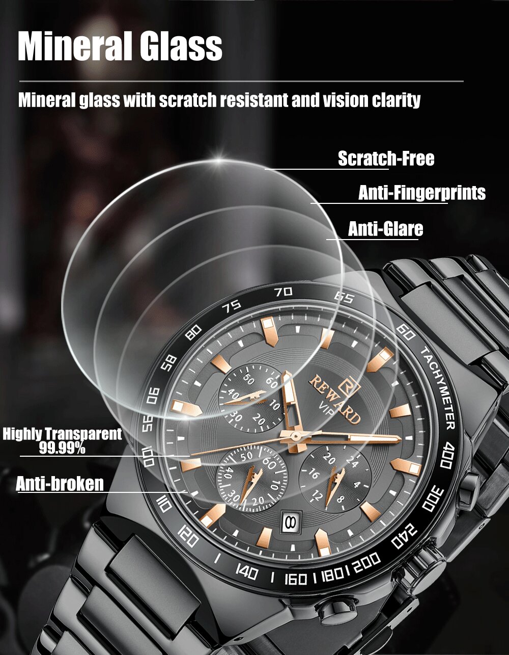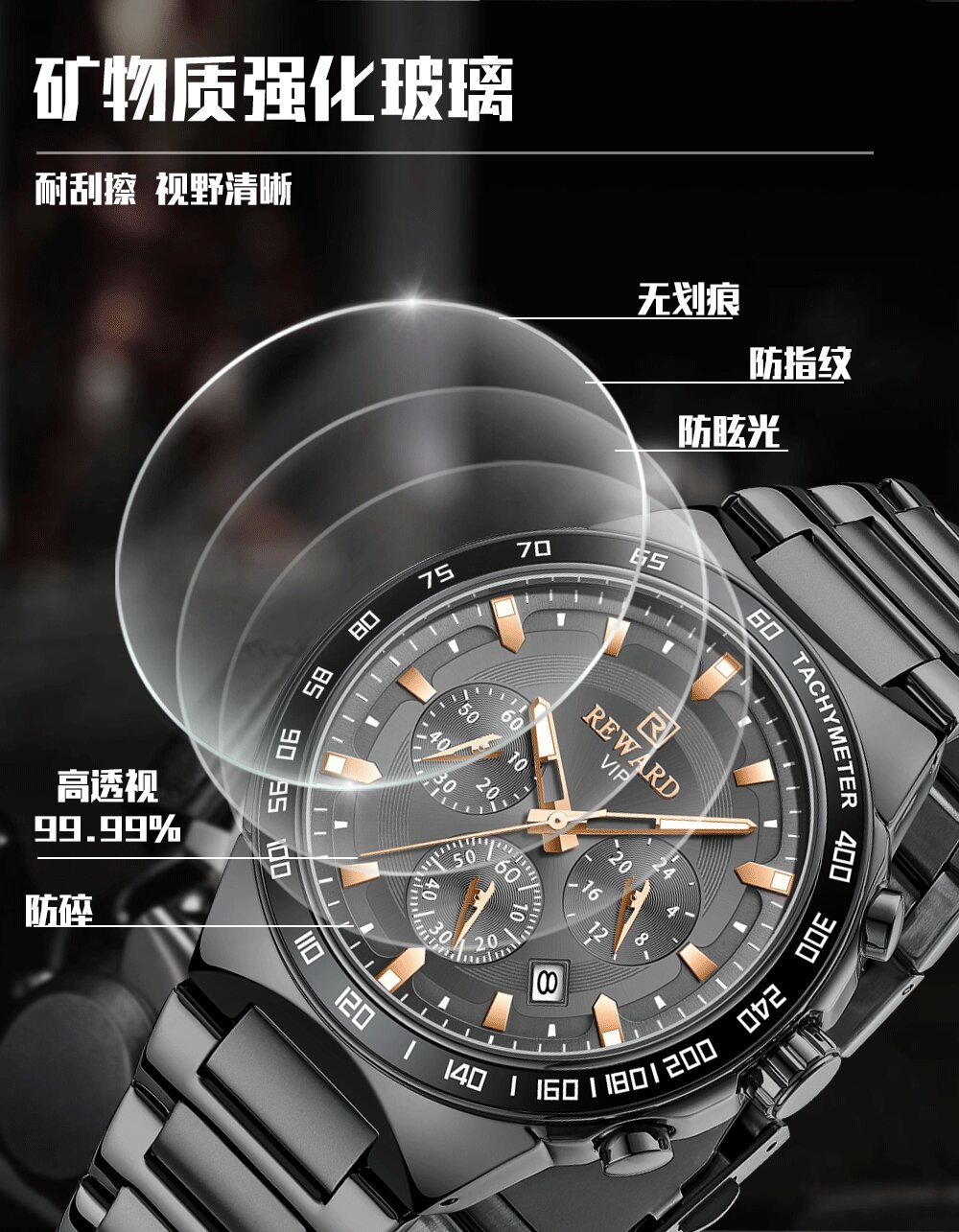 | 矿物质强化玻璃镜面 | 机芯型号 | PE902