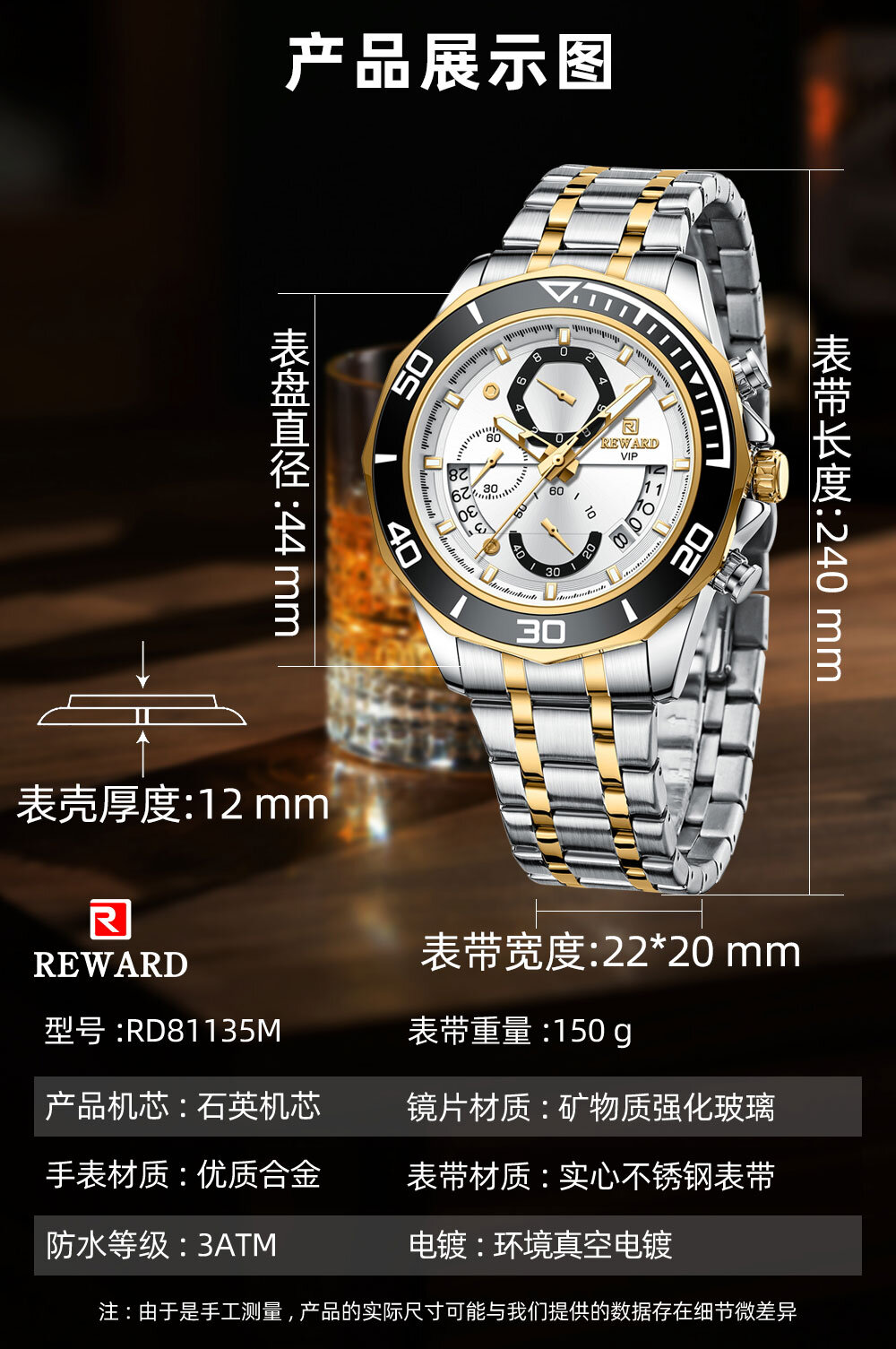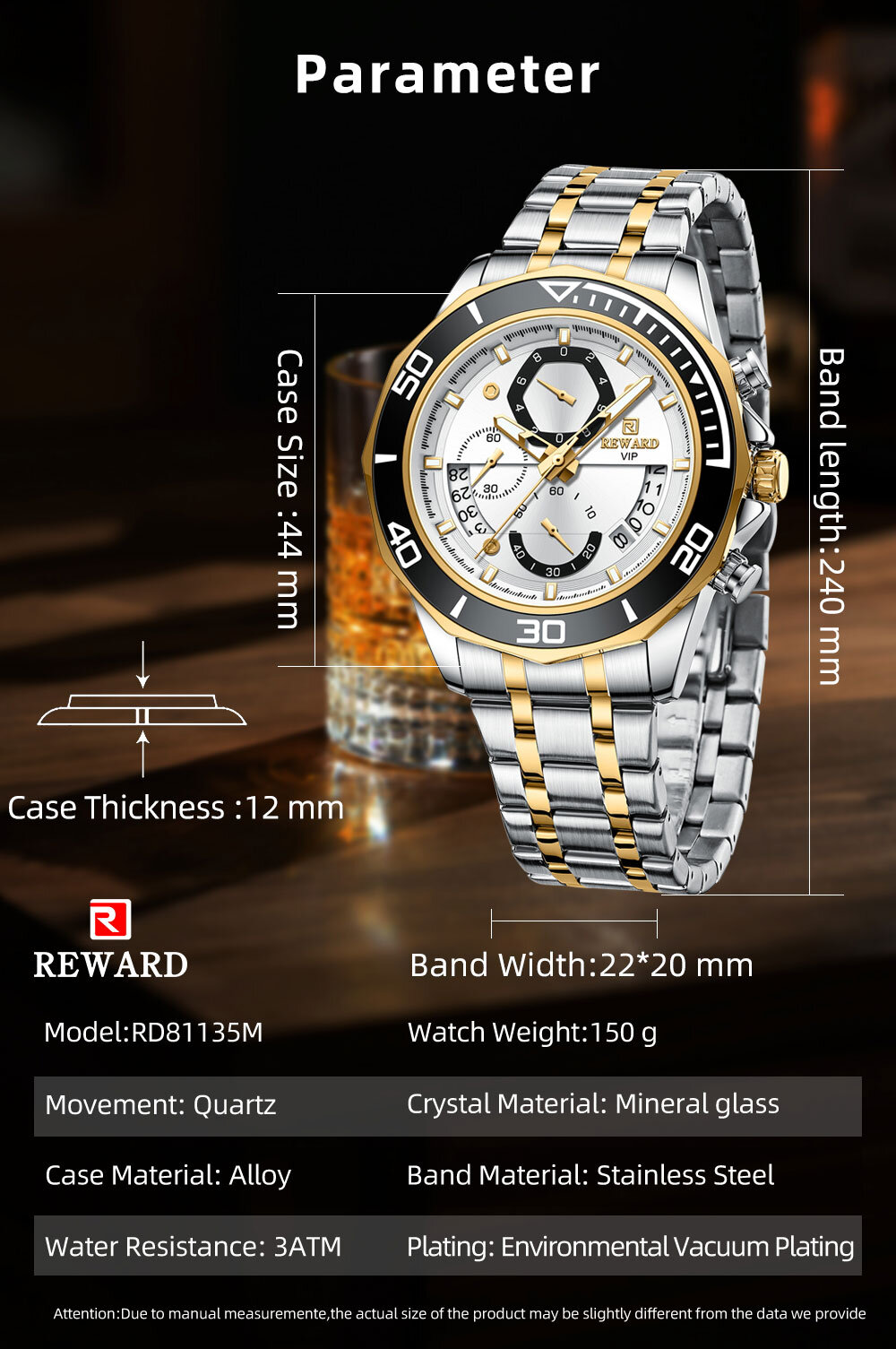 | Watch Thickness | 12 mm | Waterproof | 3 ATM |
