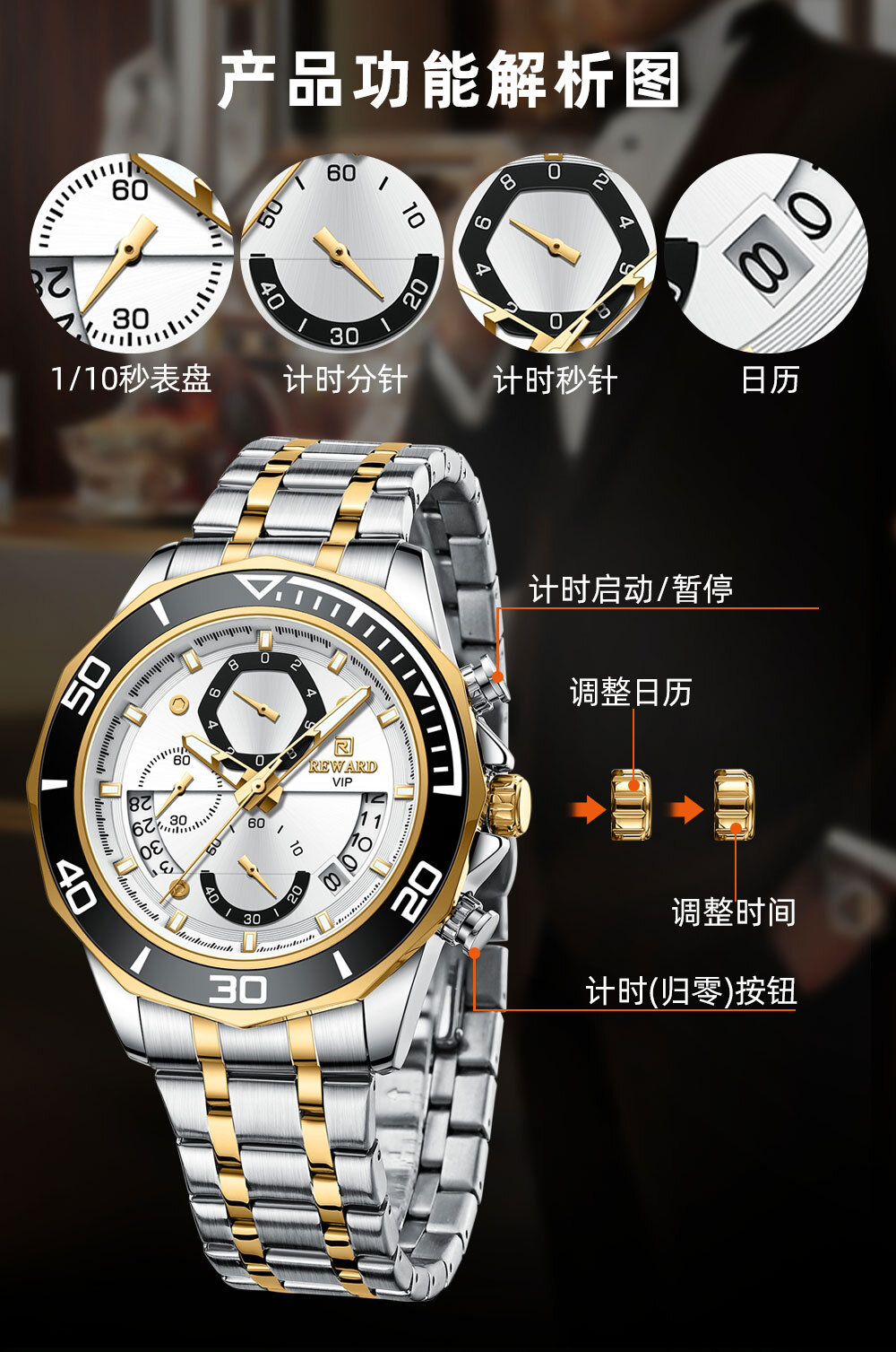 | Descript | Date,Chronograph,Luminous, | ||