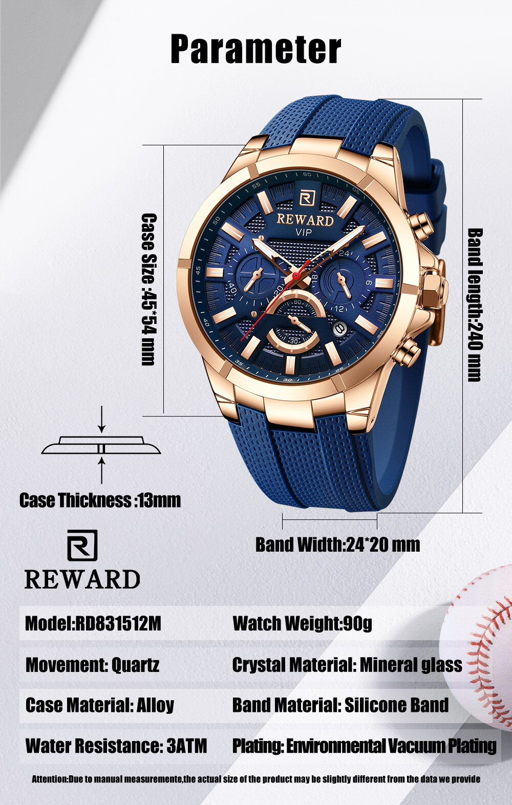 | Watch Thickness | 13 mm | Waterproof | 3 ATM |