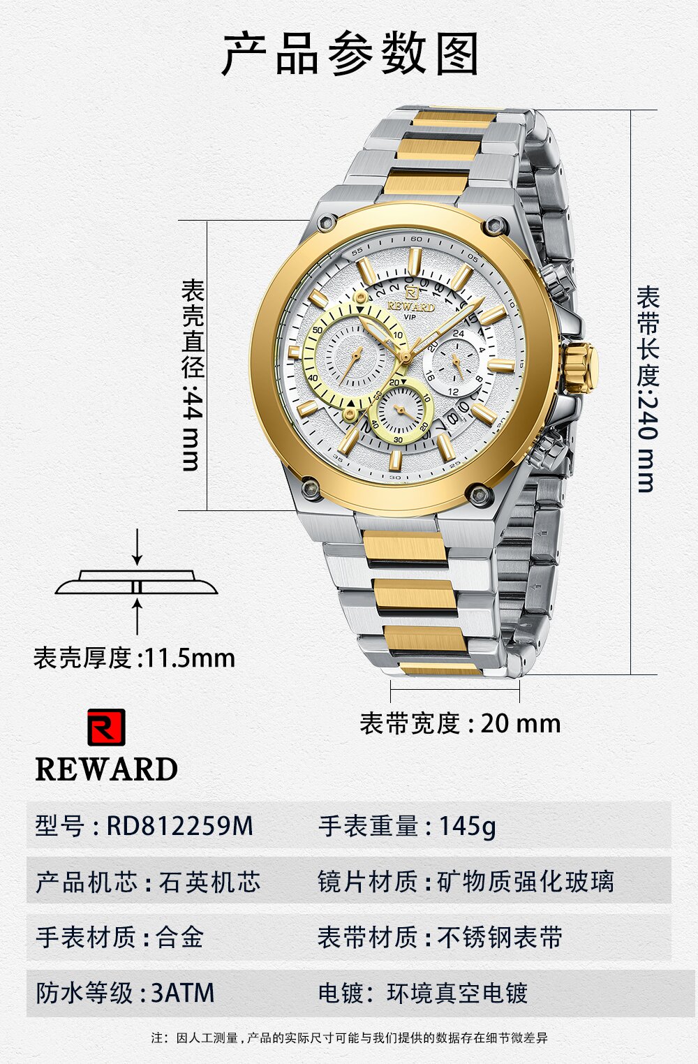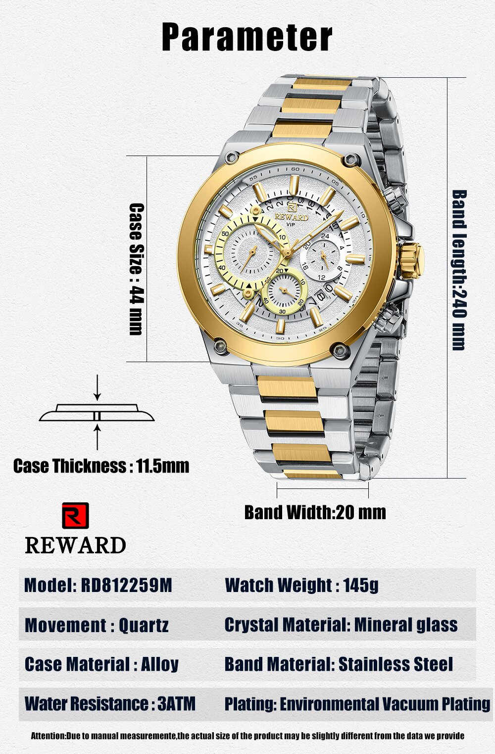 | Watch Thickness | 11.5 mm | Waterproof | 3 ATM |