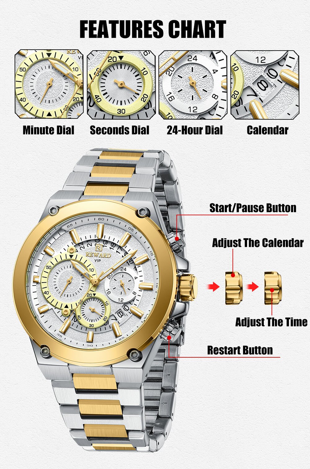 | Special Function | Date,24 Hour,Luminous,Chronograph, | ||