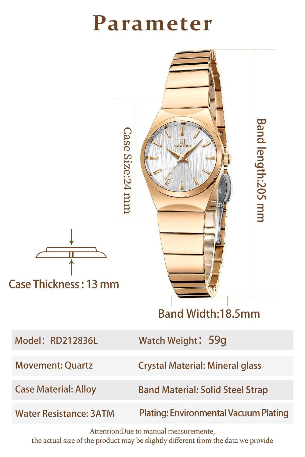 | Watch Thickness | 13 mm | Waterproof | 3 ATM |
