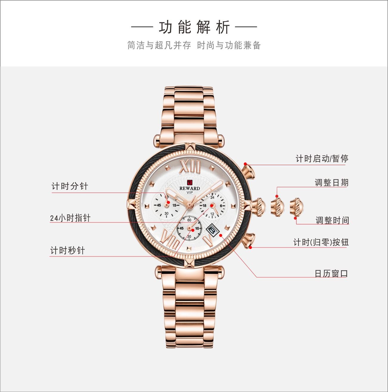 | Descript | 实心钢带,日历、24小时,最大六十分钟计时运动腕表 | ||