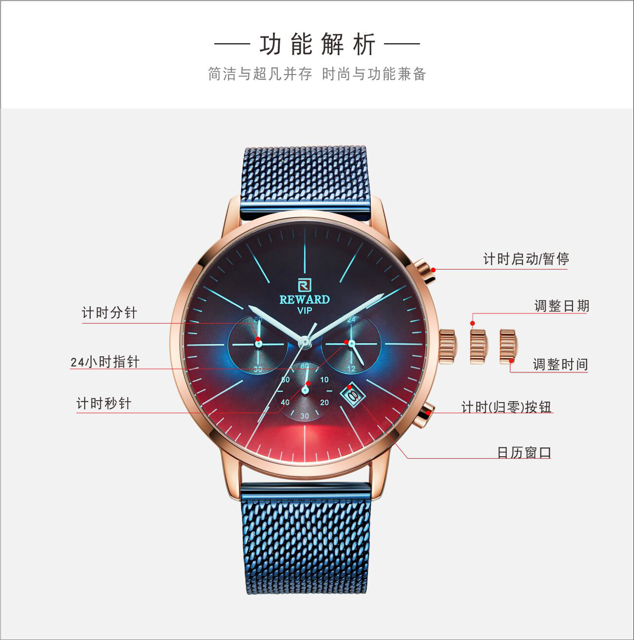 | Descript | 30米生活动防水,免除碰水摘表的麻烦 | ||