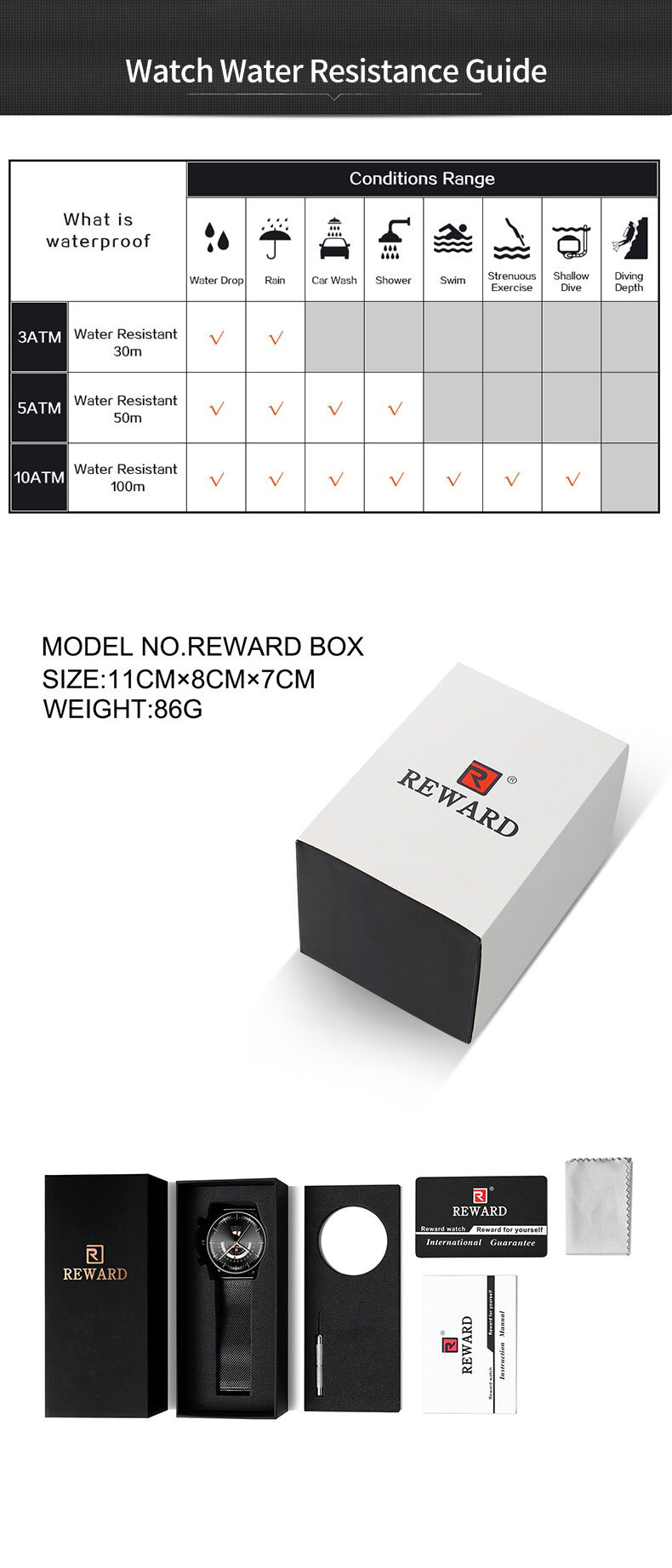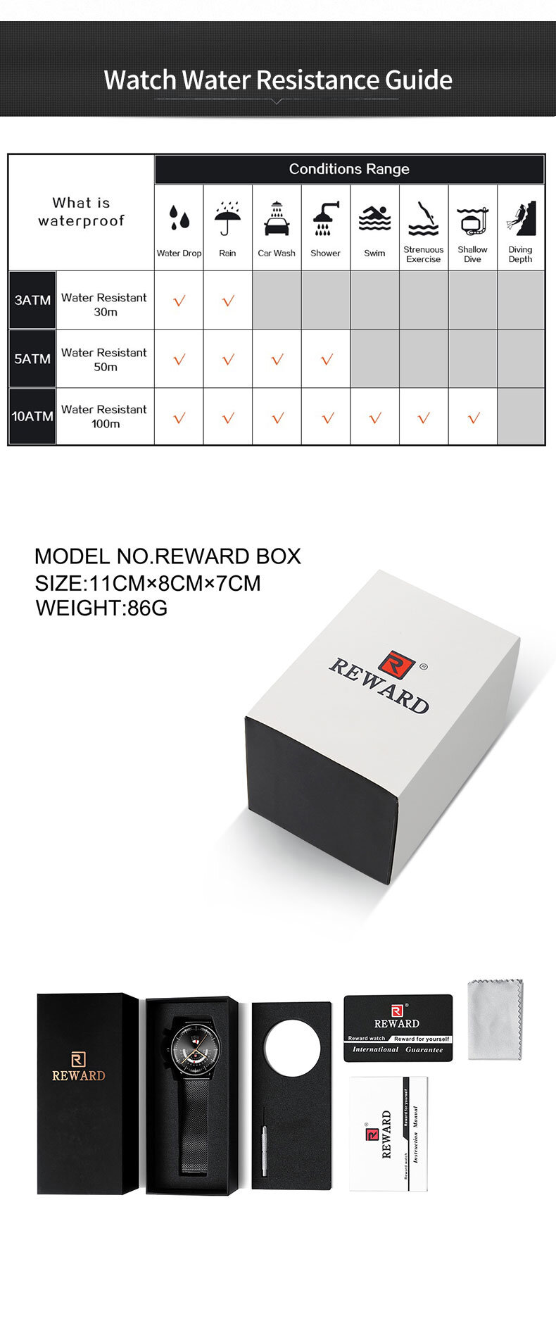 | Descript | 30米生活动防水,免除碰水摘表的麻烦 | ||